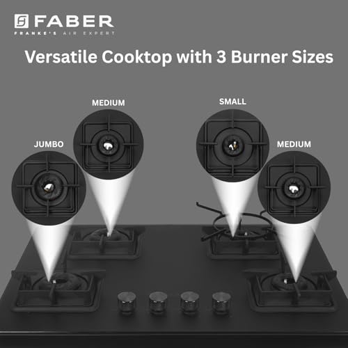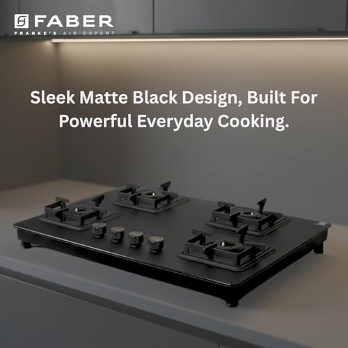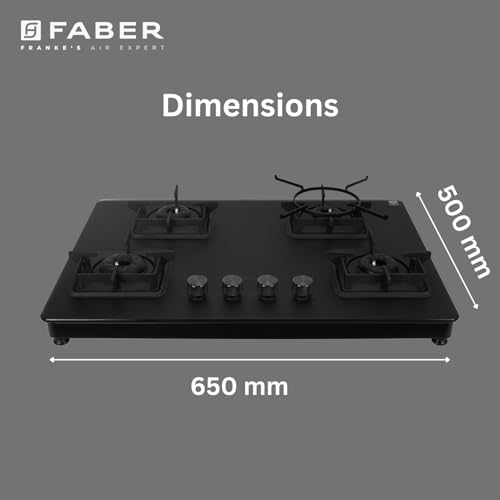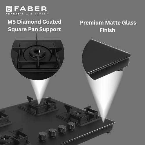 Specification: Faber Evoke 4 Burner 65Cm Cooktop |Auto Ignition| |Metal Knobs| MS Diamond Coated Pan Support | Matt Black Glass Finish |5 Yrs Warranty On Glass &…