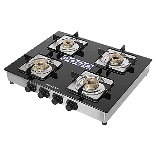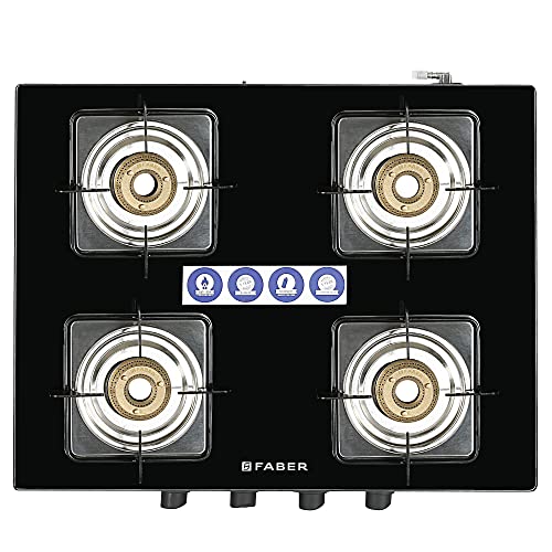 Specification: Faber Gas Stove 4 Burner Tempered Glass Cooktop (Cooktop Supreme Plus C 4BB) Manual Ignition, Black