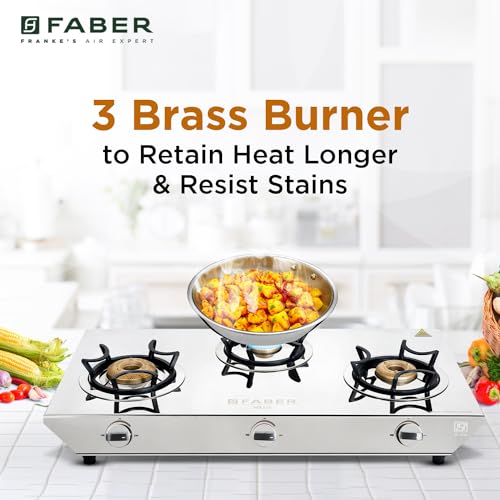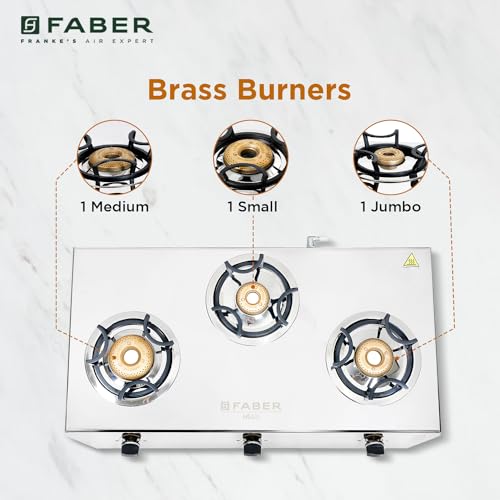 Faber Hilux 3 Burner SS Gas Stove | 1 Jumbo + 1 Medium + 1 Small | Anti-Skid Legs | Drip Tray | 360° Nozzle | Nylon Knobs | Heat Resistant Pan…