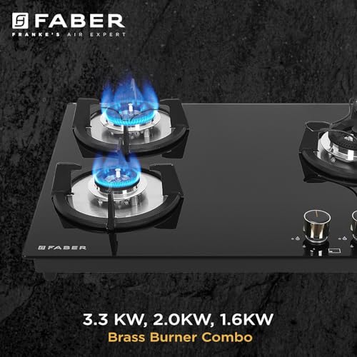 Faber Hob 3 Burner | Auto-Ignition | Spillage Proof | HOB SUPERIA HT653 BR AI |Metal Knobs | Pan Support |5 Yr Warranty on Burner & Glass | 1Y…
