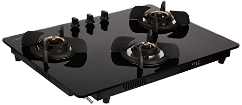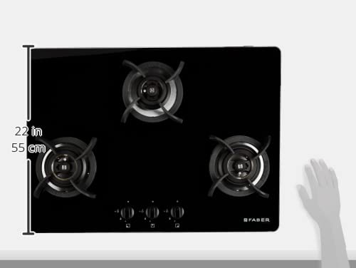 Faber Hob/Hobtop 3 Brass Burner Electric Auto Ignition, Glass Top (HOB ULTIMA HT723 CRS BR CI AI) – Black, 72 cm
