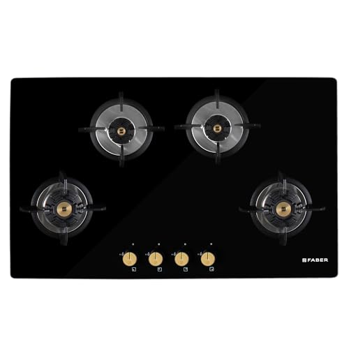Faber Hob/Hobtop 4 Brass Burner Auto Ignition Glass Top Gas Stove(Maxus HT904 CRS BR CI AI) Black