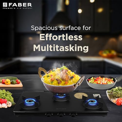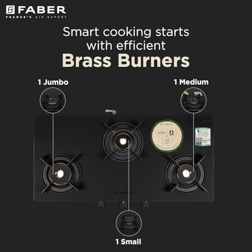 Specification: Faber Nebula Black Matt Glass Finish Cooktop |3 Brass Burners – Jumbo, Medium & Small | Manual Ignition| Heavy Pan Support With ABS Knobs| 5Yr…