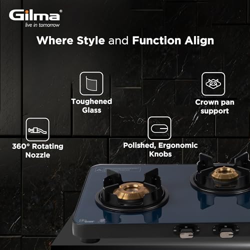 - Stylish Italian Design with SABAF Burners: Inspired by Italian craftsmanship, the Gilma Celeste gas stove is sleek, modern, and less than half the height of regular gas stoves. Its Celestial Azure finish, stylish levers, and premium SABAF burners blend effortlessly with your kitchen slab, delivering both aesthetics and performance.