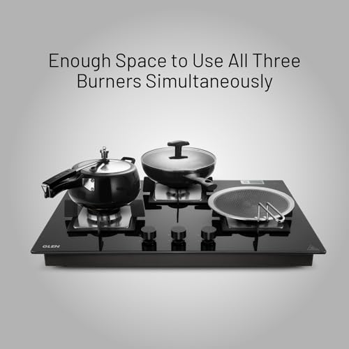 2 reviews for Glen 3 Burner Built-In Gas Hob | Auto Ignition | 8 mm Toughened Glass | Forged Brass Double Ring Burners | Black (BH1073SQHTDB70)