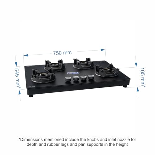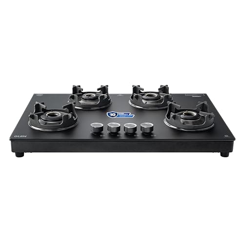 Specification: Glen 4 Burner Ultra Slim LPG Gas Stove | Matt Glass & Matt Frame | 1 Jumbo Forged Brass Burner | 10-Year Warranty | Crown Pan Support | 360ยฐ…