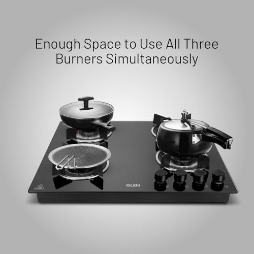 Specification: Glen Hob 4 Burner Built In Hob Top 60 cm | Auto Ignition | 8 MM Thick Toughened Glass Top Black | Double Ring Forged Brass Burners (1064 RO HT DB)