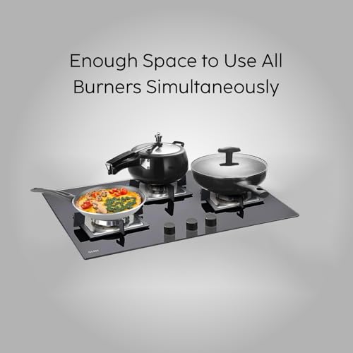 - : With 730 x 420 mm Spacious layout along with three burners allows you to multitask and cook multiple dishes simultaneously, saving time and effort. European high precision gas valves for safety and no sim off.