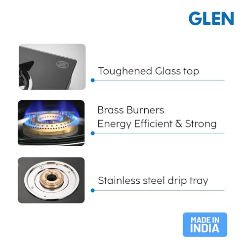 Glen LPG Gas Stove 4 Burner | Toughened Glass Top | Brass Burners | Black | Manual | ISI Certified | Revolving Inlet Nozzle | | Warranty 2 Years…