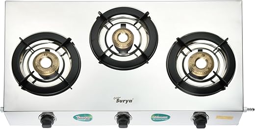 Set Alert for Product: GOLDEN SURYA 3 Burner Gas Stove, Premium Stainless Rust Proof Frame, 3 Brass Burners, Manual Ignition, 18 Months Warranty, BIS Certified -(Trimax) - Rs. 2,778