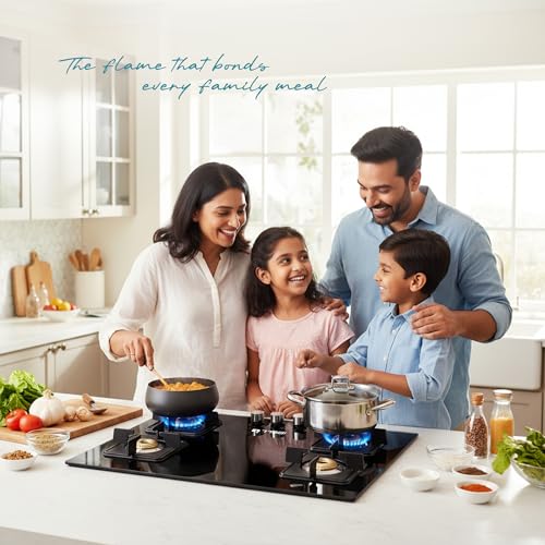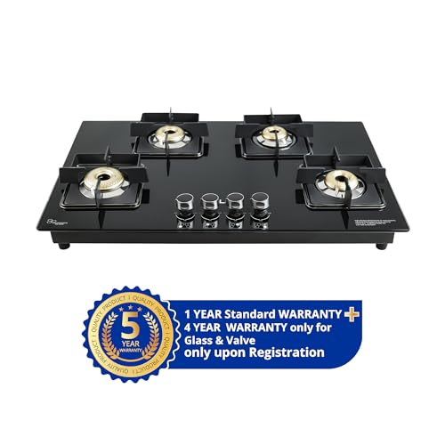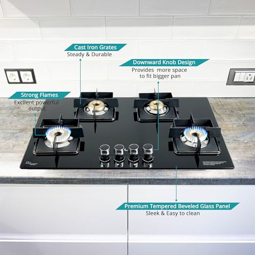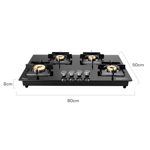 Specification: iBELL Flame 4 Burner Hob Gas Stove, Auto Ignition, Toughened Glass Top, Big Size (Brass, Black, 80 X 50 X 8 Cm)