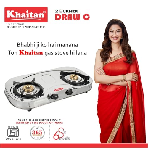 Khaitan 2 Burner Draw C LPG Cooktop with Extra Big Party Cooking Brass burner Stainless Steel Body Manual Ignition LP Gas Stove (2 BURNER DRAW C)