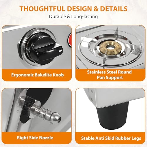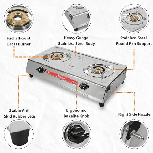 The stainless steel body feels sturdy and durable, and the manual ignition works flawlessly. Both burners provide excellent flame control, making cooking fast and efficient. The stove is easy to clean and maintain, which is a big plus for daily use.