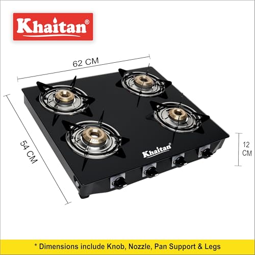 Specification: Khaitan 4 Burner Active Forged Black Toughened Glass Manual Gas Stove (4 Burners)