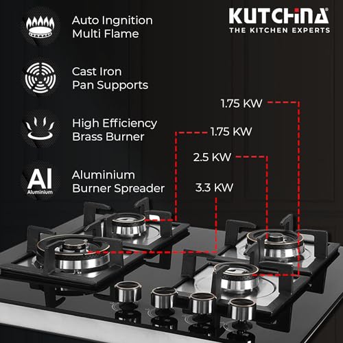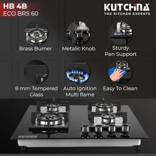 Specification: Kutchina Marica HB 4B ECO BRS 60 Hob Gas Stove 4 Burners | Auto Ignition | Cast Iron Pan Support | Gas Chulha 4 Burner | 1year on Product + 5years…