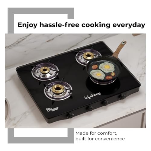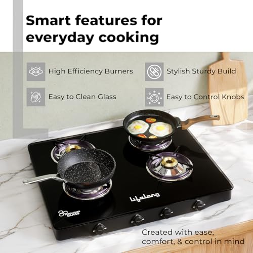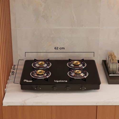 Lifelong 4 Burner Gas Stove with Free Gas Saver | Manual Ignition Cooktop, Modern Glass Stove Top for Modular Kitchen, ISI Certified & Compatible…