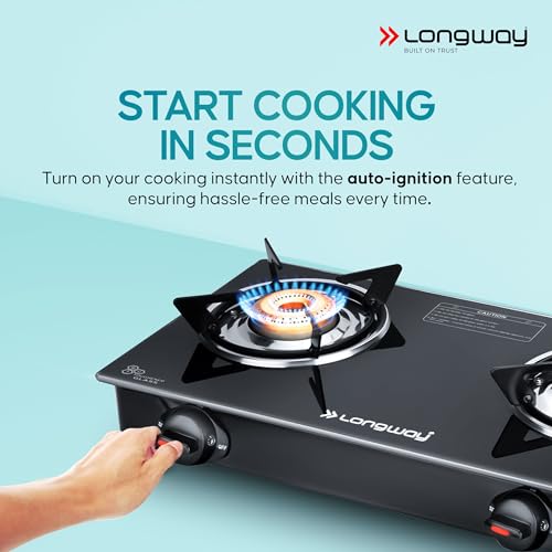 Specification: Longway Furn Glass Top | 2 Burner Auto Ignition Glass Gas Stove | ISI Certified with 2 Year Warranty (Black)