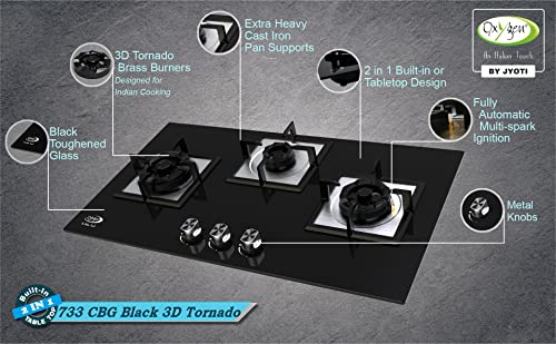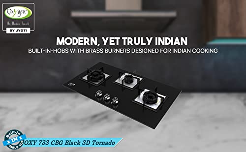 Oxygen by Jyoti – Oxy 733 CBG Black | Brass Burners Suitable for Indian Cooking | Automatic Multi-spark Ignition | 2-in-1 Built-in or Tabletop |…,