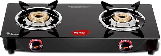 9 reviews for Pigeon Aster Gas Stove 2 Burner with High Powered Brass Burner, Gas Cooktop with Glass Top and Powder Coated Body, black, standard (14266)