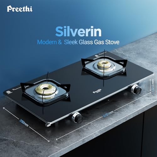 Preethi Silverin 2 Burner Glass Top Gas Stove | Easy-to-Clean with XL Spill Tray | Sparkling Clean in 2 Minutes | 5-Year Glass & Burner Warranty |…