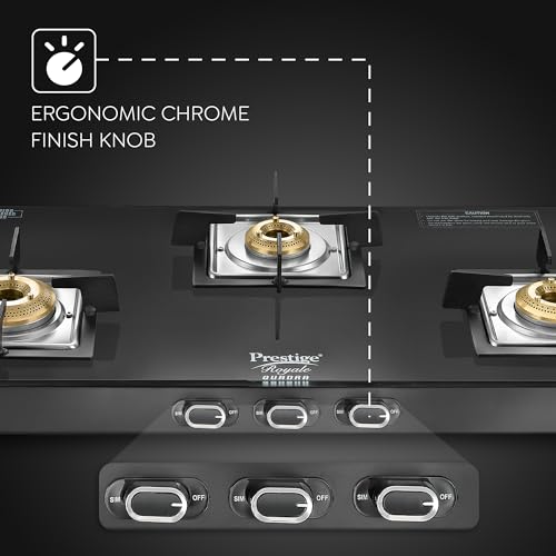 Prestige Royale Quadra 3Burner Gas Stove|Superior Toughened Glasstop with 5-Year Warranty| 3-Way Nozzle Design|Tri-Pin Jumbo Burner |Uniquely…