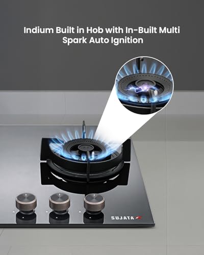 The lowest price of Sujata 3 Burner Gas Stove Glass Top | 5 Years Warranty | Auto Ignition Gas Stove 3 Burner, CookTop cum Hob Top 3 Burners, LPG & PNG Compatible, Brass Burner (Indium Auto Ignition - Black) was obtained on February 27, 2026 7:21 pm.