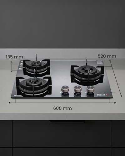 Specification: Sujata 3 Burner Gas Stove Glass Top | 5 Years Warranty | Auto Ignition Gas Stove 3 Burner, CookTop cum Hob Top 3 Burners, LPG & PNG Compatible,…