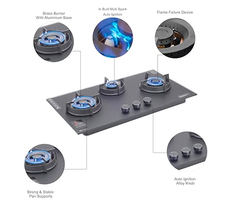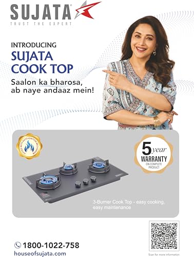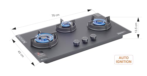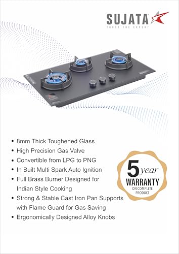Sujata 3 Burner Gas Stove Glass Top | 5 Years Warranty | Auto Ignition Gas Stove 3 Burner, CookTop cum Hob Top 3 Burners, LPG & PNG Compatible,…