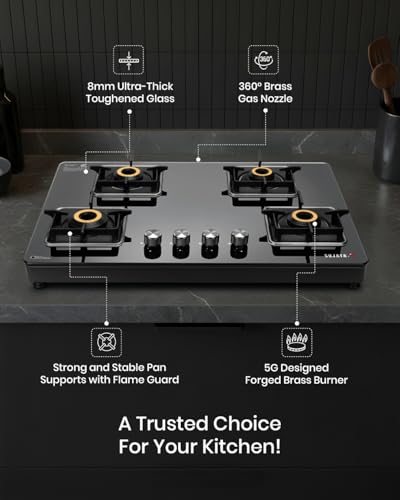Specification: Sujata 4 Burner Gas Stove Glass Top | 9 Years Warranty | Premium Gas Stove with Jumbo Brass Burners | SABAF Technology | ISI Certified | LPG & PNG…