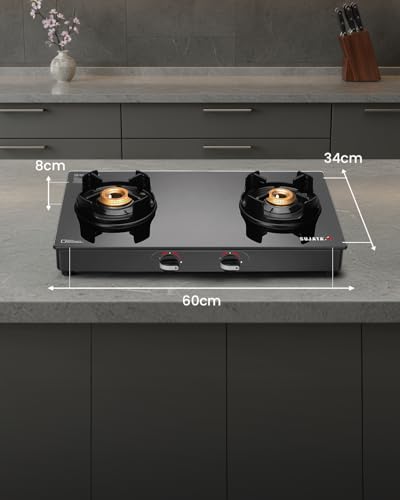 • 2 Burner Gas Stove: Stylish stove 2 burner with auto ignition and 8mm ultra-thick toughened glass for superior safety, strength, and a modern kitchen finish.
