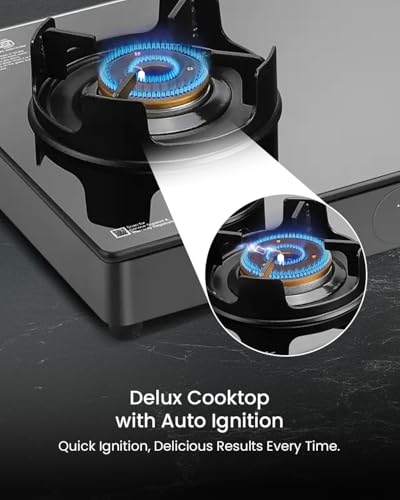 • Durable Toughened Glass Cooktop: Scratch-resistant, heat-resistant glass adds long-lasting performance and premium appeal to this gas stove 2 burners.