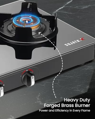 Specification: Sujata Deluxe Auto Ignition Gas Stove | 9 Years Warranty | Stove 2 Burner, 2 Burner Gas Stove, SABAF, ISI Certified, LPG & PNG Compatible, Brass…
