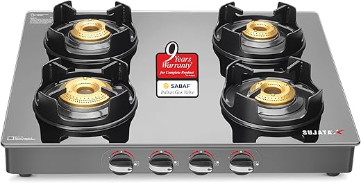 Sujata Deluxe Gas Stove | 9 Years Warranty | Gas Stove 4 Burners Glass Top, 4 Burner Stove, Manual Ignition, SABAF, ISI Certified, LPG & PNG…