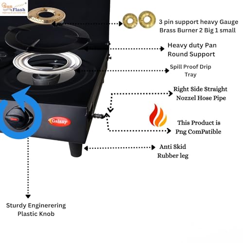 - β High Quality Aluminum Mixing Tube π₯ Three Burner Brilliance The Sun Flash Gas Stove boasts three high-performance burners that are ready to take on any culinary challenge. These burners are the heart of the stove, designed to deliver consistent and precise flames for all your cooking needs. Whether you’re simmering a delicate sauce or searing a steak to perfection, these burners offer the versatility required in modern kitchens