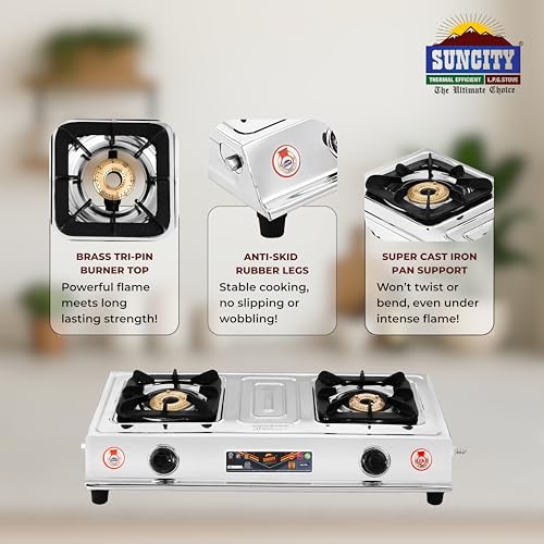 - It has a thick-gauge stainless steel body. It protects against rust while providing long-lasting performance. Fuel Efficient Tri Pin Brass Burners for a variety of applications.