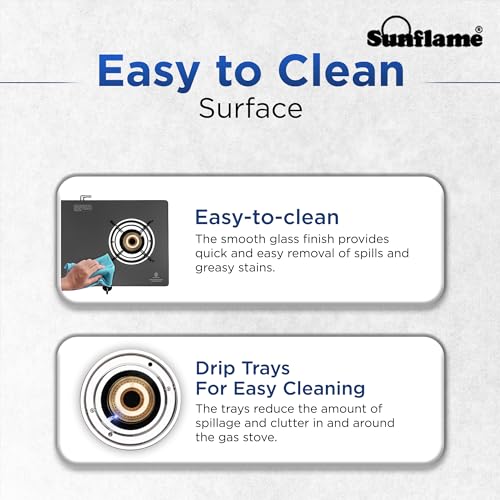 Specification: Sunflame Crystal 2 Burner Auto Ignition Gas Stove | 1 Medium & 1 Small Brass Burners | 2 Years Product Coverage by Sunflame | Heavy Duty Pan…