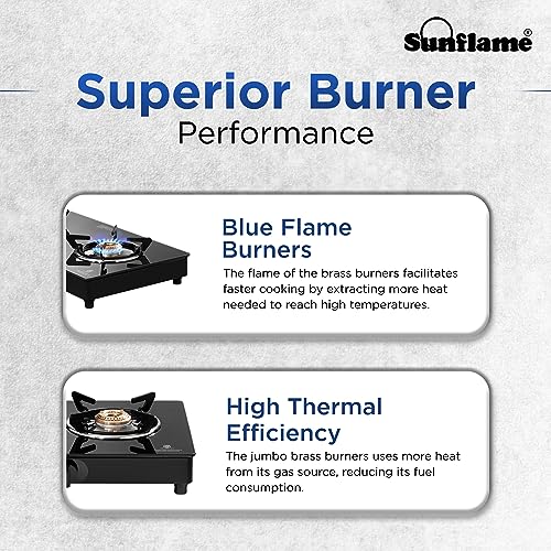 - Enhanced Cooking: The two brass burners allow faster cooking, with one jumbo burner and one small burner at higher temperatures and lower energy consumption. The blue flame burner indicates fuel efficiency, reducing gas usage and energy costs.