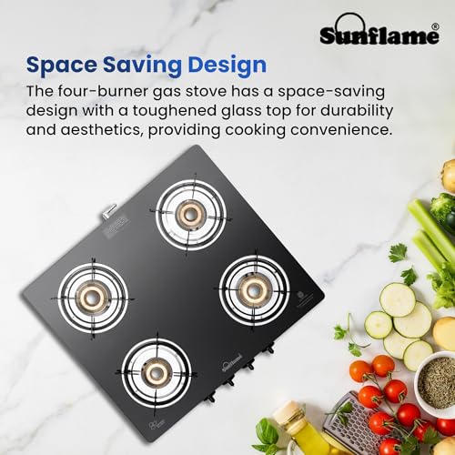 - ISI Certified for Safety: The Sunflame gas stove 4-burner is ready to be used with LPG, meeting BIS standards to ensure safety, quality, and durability.