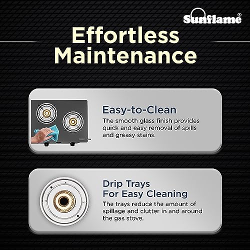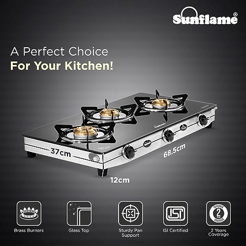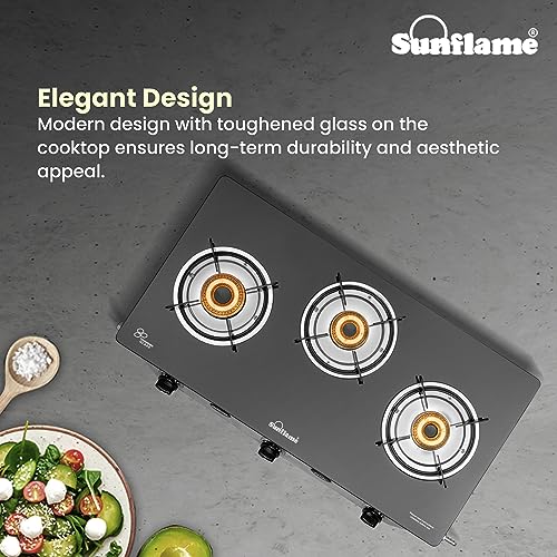 - Elegant Design: With its stylish design, the Sunflame Pride 3 Burner Gas Stove with its high-quality glass top adds an ultra-modern touch to any upscale kitchen.