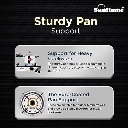 Specification: SUNFLAME Pride 3 Burner Open Gas Stove | 2 Small And 1 Medium Brass Burners | 2-Year Product Coverage | Ergonomic Knobs | Easy To Maintain L…