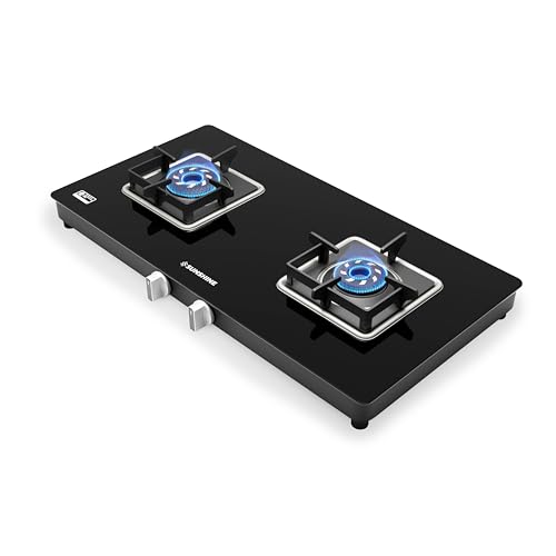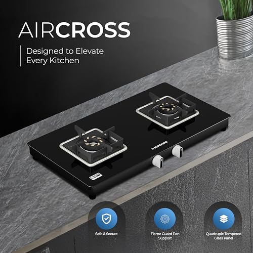 Sunshine Aircross 2 Burner | Ultra Slimmest 2 Burner Gas Stove | Tempered Glass, Forged Brass Burner, 360°Rotating Brass Gas Nozzle | Manual…