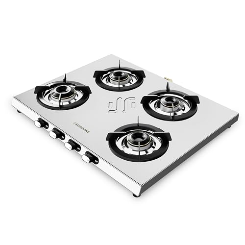 Sunshine Falcon Ultra 4 Burner Gas Stove | Stainless Steel Body | Brass Burners with 5G Technology | ISI Certified, 5-Year Warranty on Burners by…,