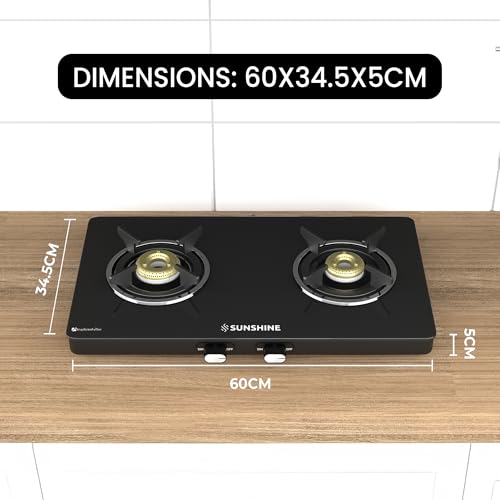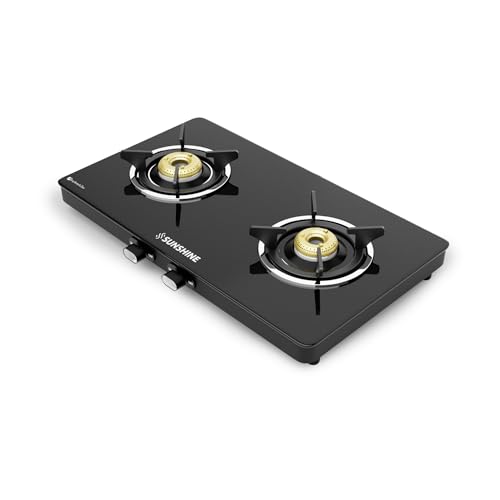 Sunshine Phoenix 2 Burner | 2 Burner Glass Cooktop | Bakelite knob, 360° Rotating Gas Nozzle, Tempered Glass | Manual Ignition | LPG Ready & PNG…