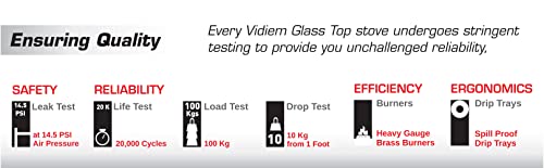 Vidiem Edge Shine Gas Stove | 8mm Toughened Glass Top | Extra Large Cooking Surface | Heavy-Duty Brass Burners | Manual Ignition | Lifetime Glass…