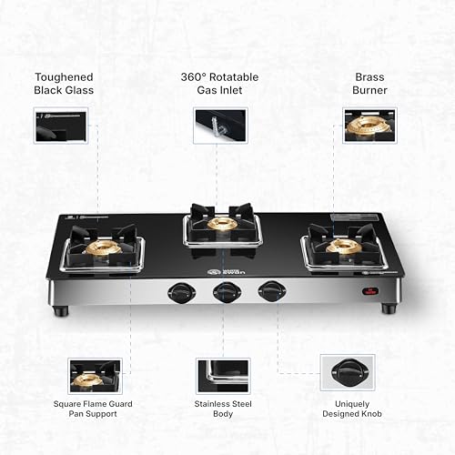 - Efficient Cooking: Equipped with 3 pure brass burners and square flame guards for uniform flame distribution and stable utensil support.
