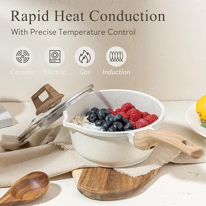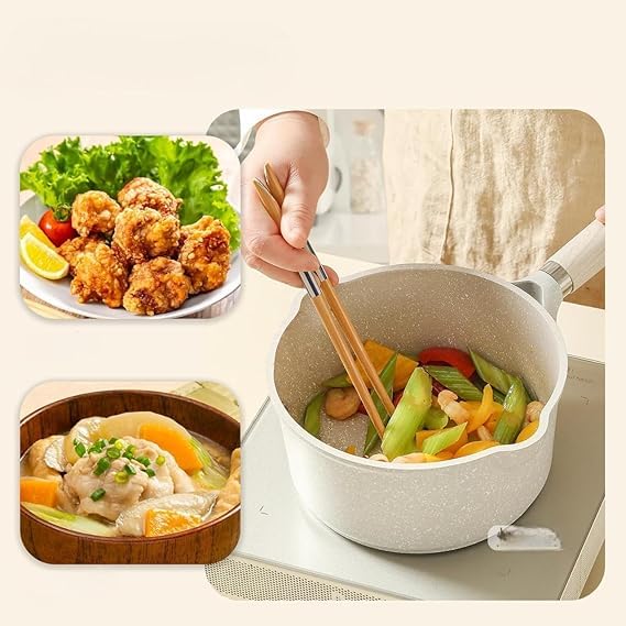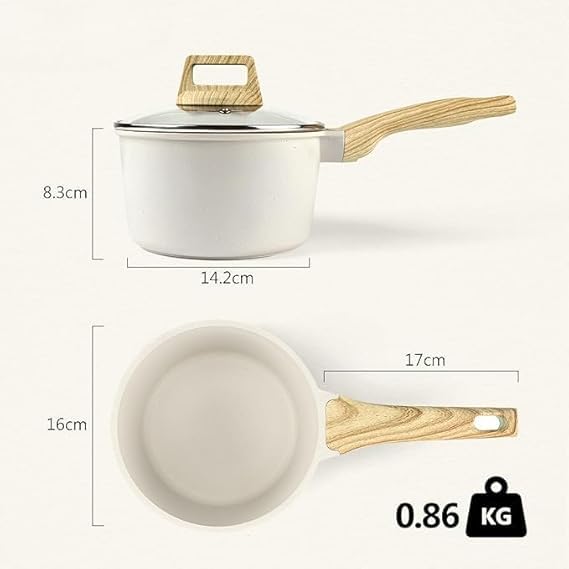Specification: VENJA 16 cm One‑Handed Marble‑Coated Milk Pan with Glass Lid Induction Safe Non‑Stick Pot for Milk, Tea, Chai, Breakfast & Boiling Easy to Clean…