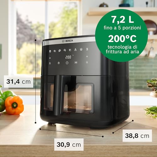 Bosch Oil Free Deep Fryer Series 6, MAF671B0, Air Fryer XXL, 7.2L Capacity, 7 Preset Programs, Illuminated Cooking Pane, Up to 65% Faster, Black,