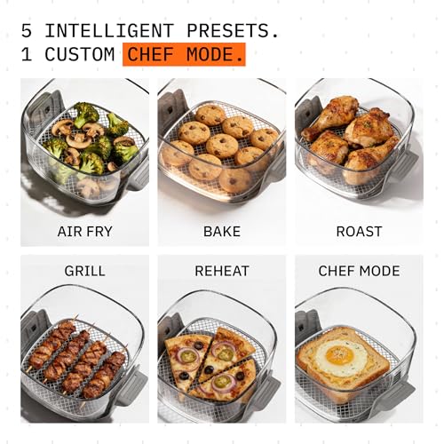 5 MODES + CUSTOM CHEF MODE: East presets for Bake. Grill. Roast. Air-Fry, Reheat. Complete control of temperature and time with custom Chef Mode for culinary adventures.