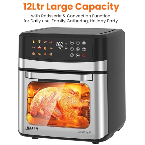 INALSA Air Fryer Oven|12L,1700W|Stainless Steel Body|12-in-1 Functions,Fry,Bake,Grill,Dehydrate&Reheat|12 Preset|Rotisserie&Convection|Dishwasher…