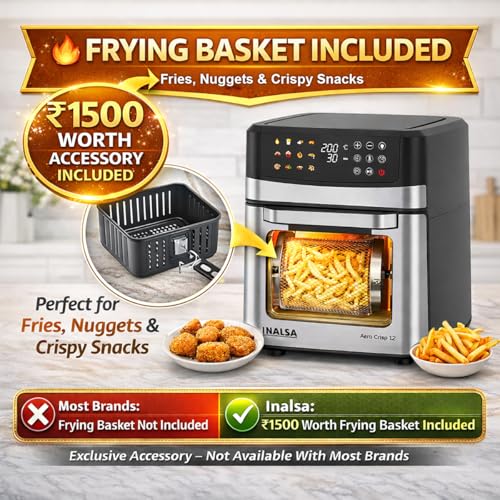 I bought INALSA Air Fryer Oven 12 Ltr few days back and I am very happy with its working. It is very user friendly. The touch panel is so easy—even my dad uses it. Presets for fries, chicken, and cake that save time. Basket is huge, comes out easily. It is dishwasher safe, just soak and wipe. Cleaning done in a minute. You can easily make fries, samosas, paneer tikka, chicken wings, etc at once, no more waiting in line for snacks…!!! I am very happy with my purchase
